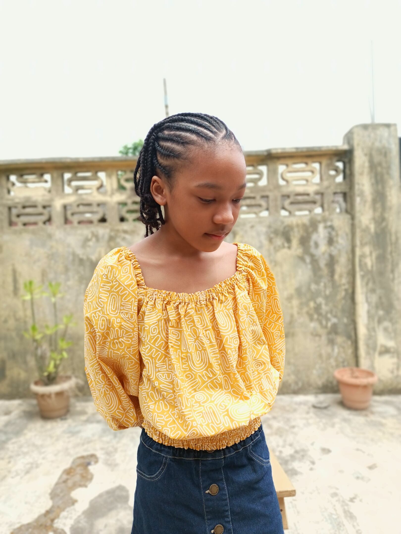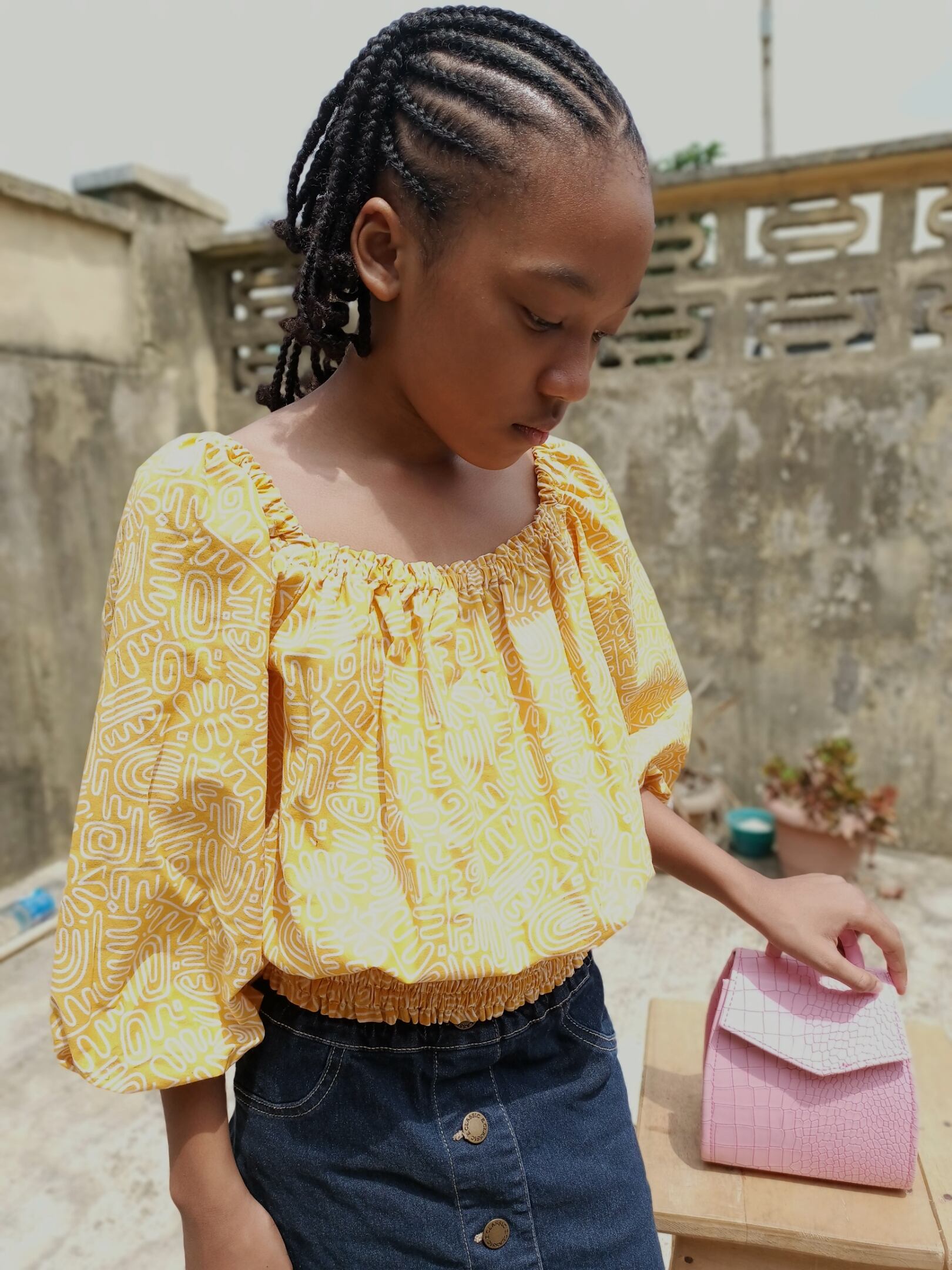 【キッズ】ギャザーたっぷりブラウス/イエロー 02-005/006