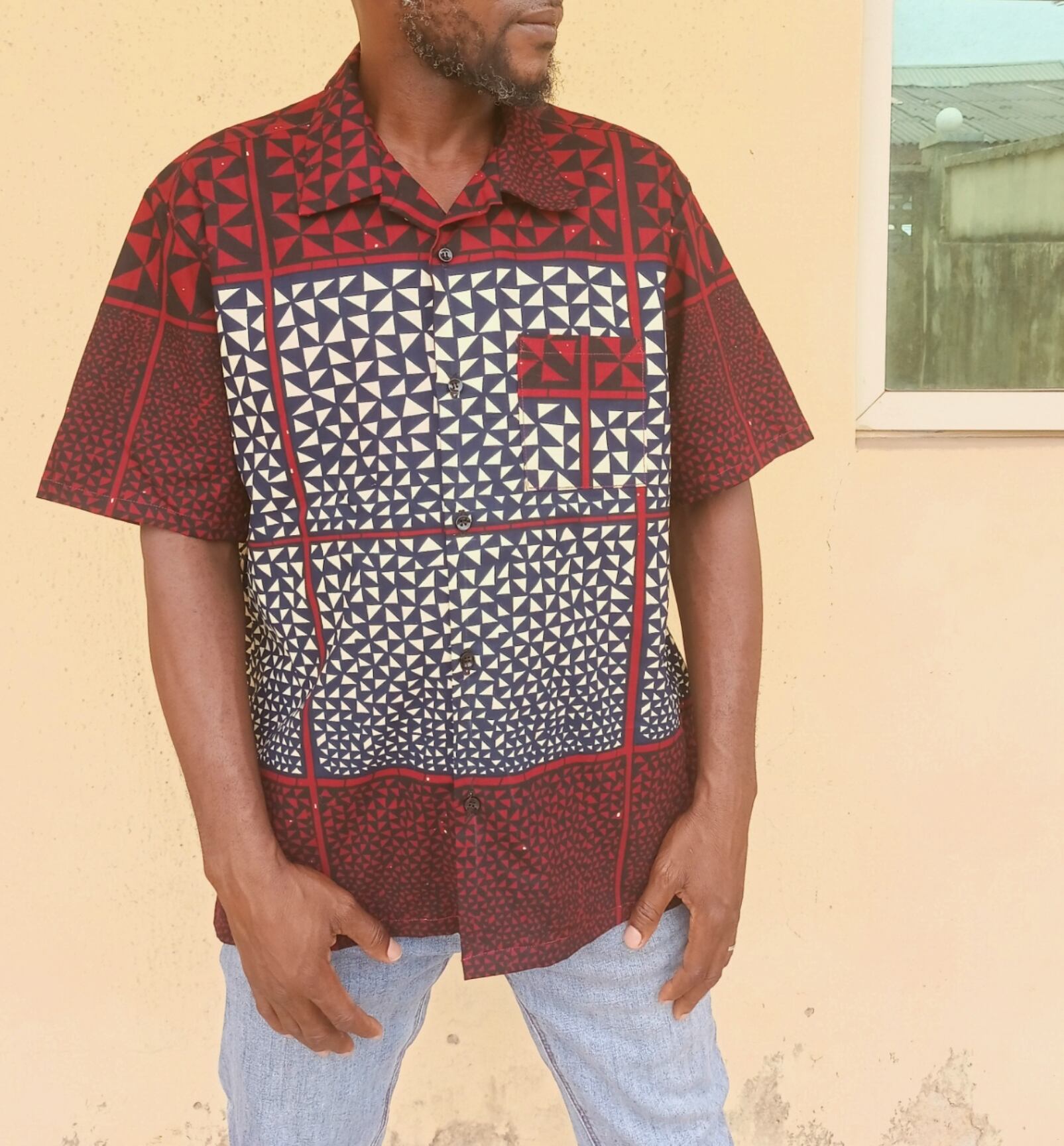 総柄のメンズシャツですが、色味がとても落ち着いていますので、初めてのアフリカンシャツや派手な服が苦手な方でも挑戦しやすい柄です。